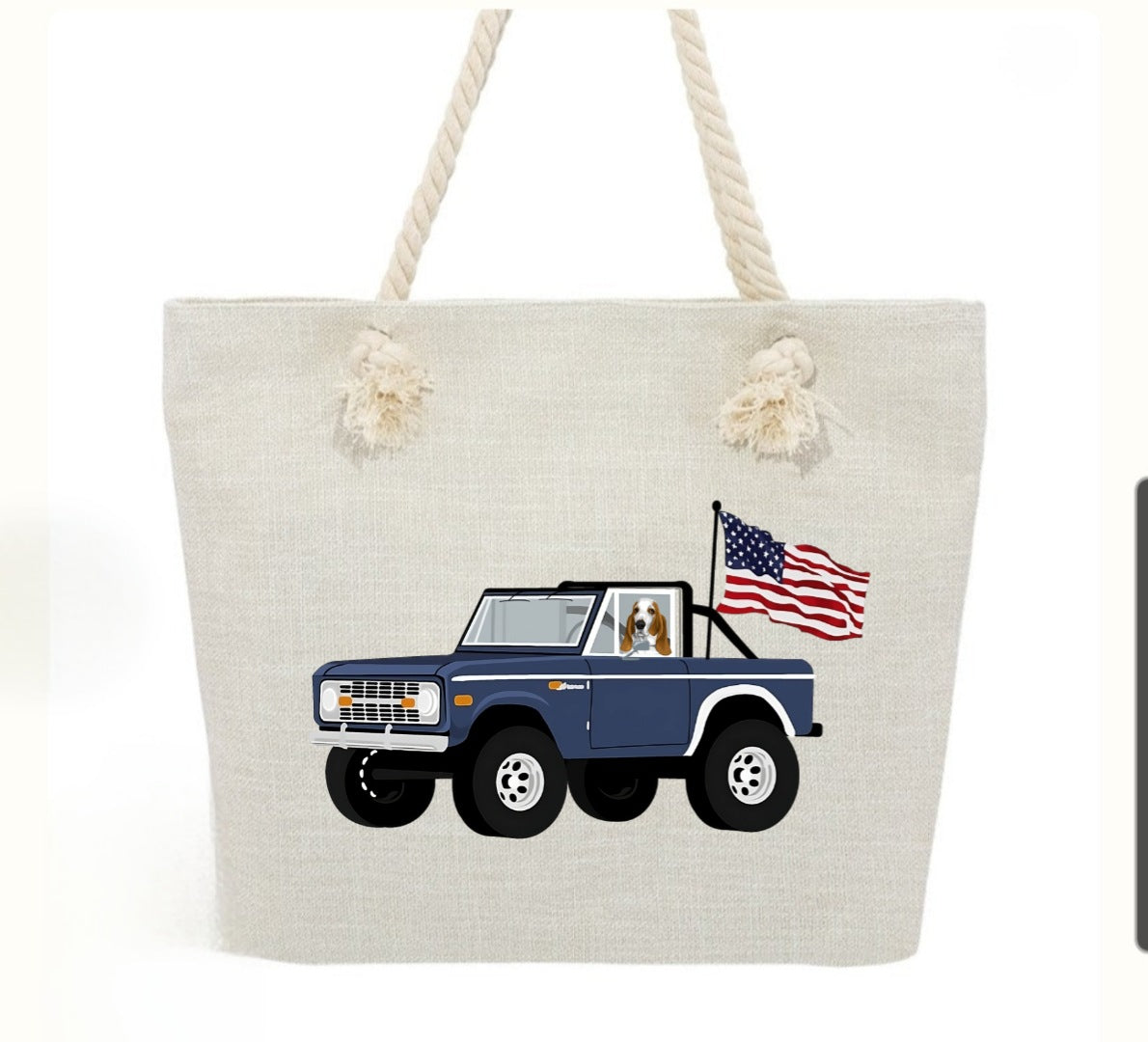 Basset Hound Ford Bronco American Flag Rope Handle Tote